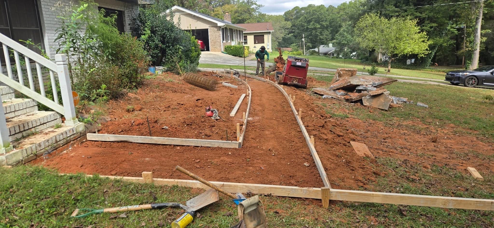 Our team began with a complete demolition and removal of the old, hazardous walkway. To ensure a long-lasting and stable result, we re-graded and heavily compacted the sub-base to prevent future settlement. We then formed and poured a new, 4-inch thick sidewalk using high-strength 4000 PSI concrete for maximum crack resistance. The new walkway was finished with a non-slip broom finish, providing a safe, beautiful, and perfectly level entrance to the home.